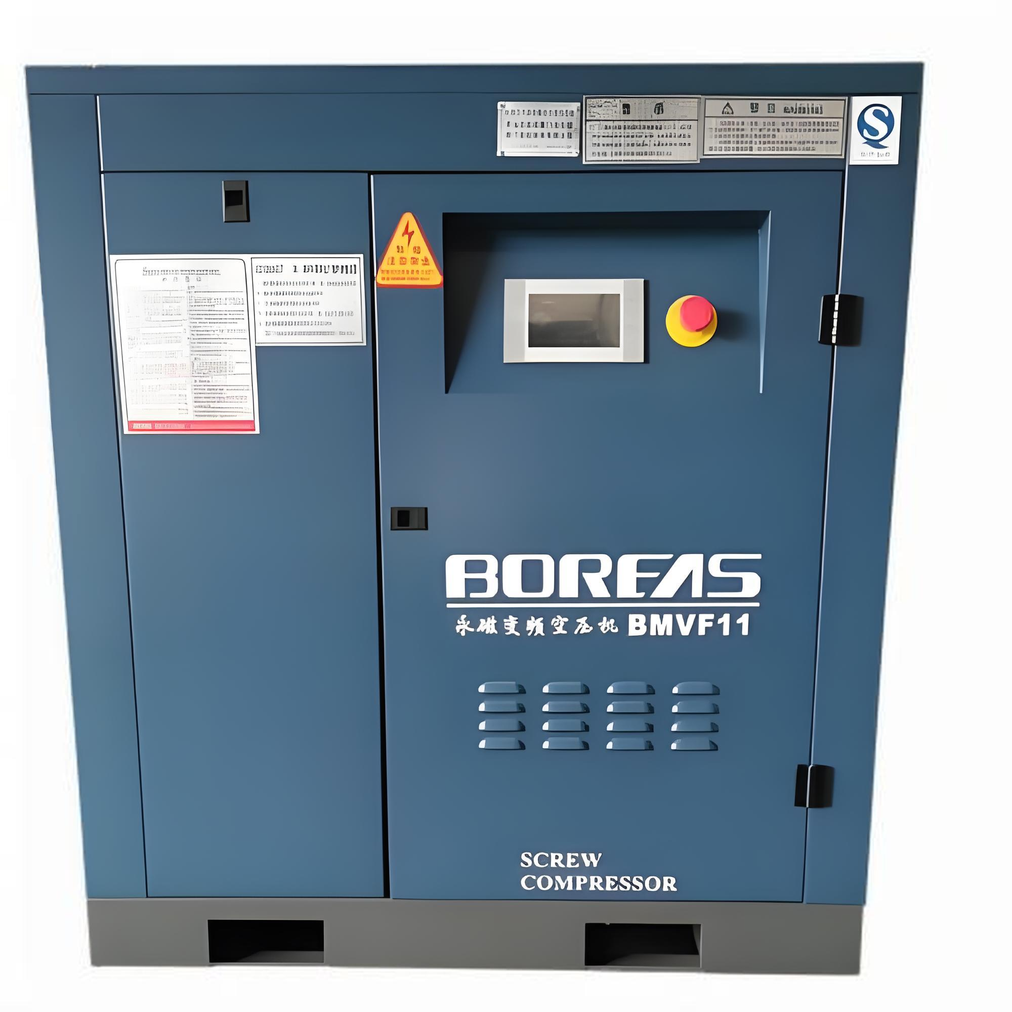 The BMVF series is a screw air compressor that integrates three core technologies: two-stage compression, permanent magnet synchronous motor, and intelligent variable frequency control. It is mainly aimed at industrial fields with high requirements for energy consumption, air pressure stability, and reliability, aiming to provide users with maximum energy-saving benefits and the lowest total cost of ownership.